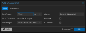 1. Go back to the Proxmox GUI VM 111  Hardware.
