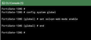 You will need to type config system global then set sslvpn-web-mode enable and finally, end .