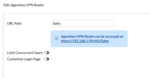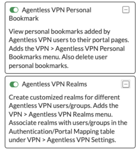 Refresh the page one more time, and you will notice that you have two new options that are available to you; Agentless VPN Personal Bookmark and Agentless VPN Realms