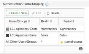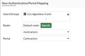 You can see on the bottom under Authentication/Portal Mapping that we have linked LCL-Agentless-Contractors with the /contractors realm and the corresponding Portal of Contractors.