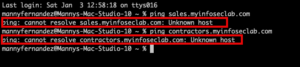 To access the lab from my MacBook, I needed to mimic an FQDN on my domain.  Below, you can see that I am unable to resolve the “fqdn”.