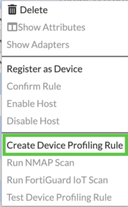You are now going to right-click on any of them and choose Create Device Profiling Rule