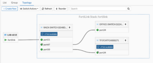 In this configuration, I have a FortiGate 600E (getting long in the tooth), a FortiSwitch 548D-FPOE, a FortiSwitch 224 and a FortiSwitch-T1024F-FPOE