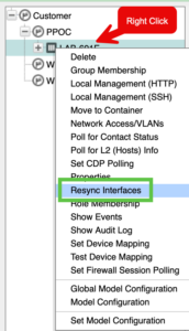 Now lets re-sync the interfaces by right clicking the FortiGate you discovered and choosing Resync Interfaces