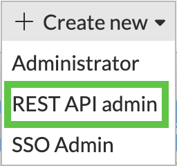 Now lets create the API admin.  Go to System then Administrators then +Create New then choose REST API admin