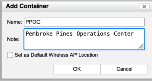 Now that we have the FortiGate section squared away, lets move to the FortiNAC GUI.  I am in Pembroke Pines, FL.  I colloquially refer to it as the PPOC (Pembroke Pines Operations Center).  I will create a container that will house my PPOC, this could be a Country, State, Location, etc.