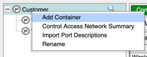 We are going to go to Network then Inventory and under Customer, we are going to Right Click and choose Add Container