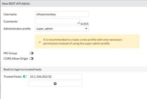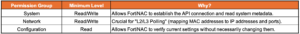 Note: While it might seem like a read-only account would suffice for discovery, FortiNAC actually requires Read-Write access to specific areas of the FortiGate configuration. This is because discovery in the FortiNAC context is rarely passive; the system needs to interact with the FortiGate API/CLI to pull ARP tables, MAC tables, and interface information.