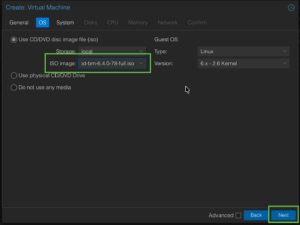 Now we will choose the OS. Here you will point to the ISO you downloaded in the previous step. You can leave the rest as defaults and choose Next.