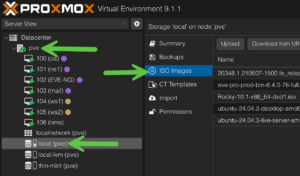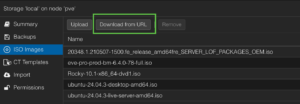 There is a couple of ways to do this. One is to download the ISO file from the EVE-NG website and the other is to tell ProxMox to download it for you. Obviously, having ProxMox do it for you saves you the time to upload it back to the pve.