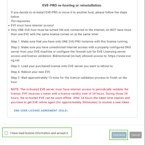 Read the EULA and if you accept it, indicate as such and click Continue.