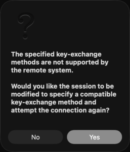 The following key-exchange method(s) are supported but not currently allowedfor this session: