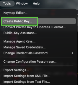 Once inside of SecureCRT, you can go to Tools then choose Create Public Key
