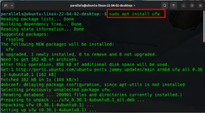 We will then install it by typing sudo apt install ufw and enter. You may need to give your password again. This will go through and install all necessary packages.