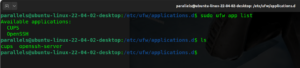 In UFW, you have the concept of App Profiles. This is not comparative to the application identification on products such as FortiGate and Palo Alto Networks. You can see the list of app profiles In two ways, one way is to go to the directory housing them and running an ls on them or you can type the following command