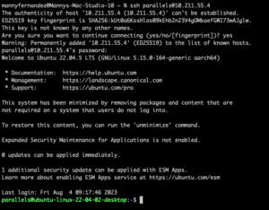 Now lets add that OpenSSH app profile on the UFW. First, with UFW disabled, I can connect to it via SSH without a problem.