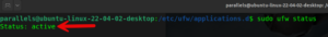 To see the status of the UFW on the Ubuntu device, give the following command sudo ufw status and enter.
